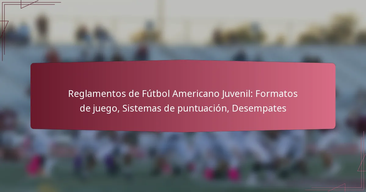 El fútbol juvenil americano abarca varios formatos de juego, principalmente 7 contra 7 y 11 contra 11, adaptados a diferentes grupos de edad y niveles de habilidad. La puntuación se logra a través de touchdowns, goles de campo y safeties, con variaciones dependiendo de la liga. Además, los procedimientos de desempate son cruciales para determinar ganadores en caso de empates, a menudo involucrando tiempo extra o escenarios de muerte súbita.