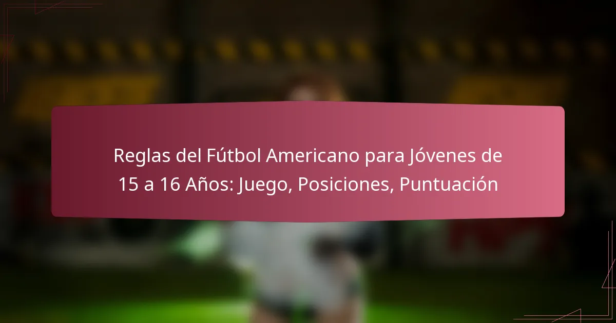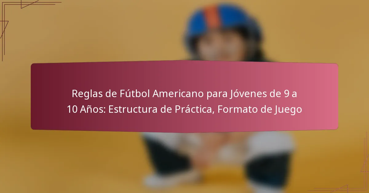 El fútbol americano juvenil para niños de 9 a 10 años enfatiza la seguridad, el juego limpio y el desarrollo de habilidades a través de reglas adaptadas para jugadores más jóvenes. Las sesiones de práctica deben ser atractivas y estructuradas para mejorar las habilidades mientras se fomenta el amor por el juego. El formato del juego presenta duraciones más cortas y tamaños de equipo específicos, asegurando una experiencia divertida y educativa para todos los participantes.